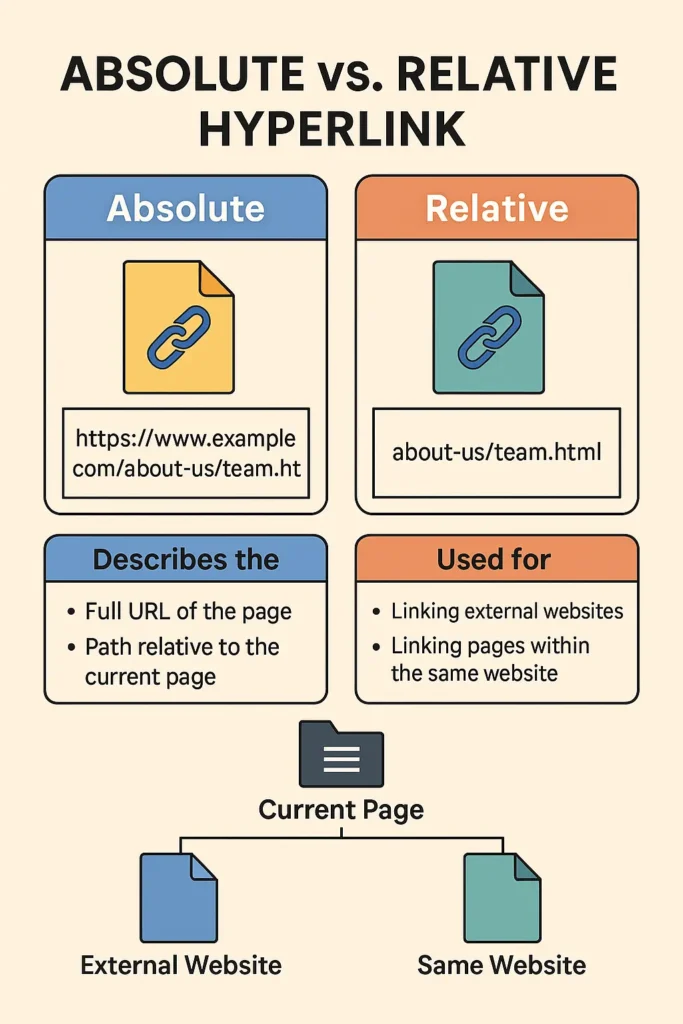 Here’s a simple visual representation to clarify when to use absolute vs. relative links: